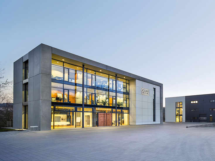 Architektur berührt. Unsere Passion gilt Türbeschlägen und Glastüren. Wir schaffen Funktionselemente der Architektur, die Räume öffnen. GRIFFWERK, mit Sitz im süddeutschen Blaustein bei Ulm, wurde 1999 gegründet und konnte seitdem eine außergewöhnliche Erfolgsgeschichte verzeichnen. In unserem Hauptsitz in Blaustein beschäftigen wir über 100 Mitarbeitende.